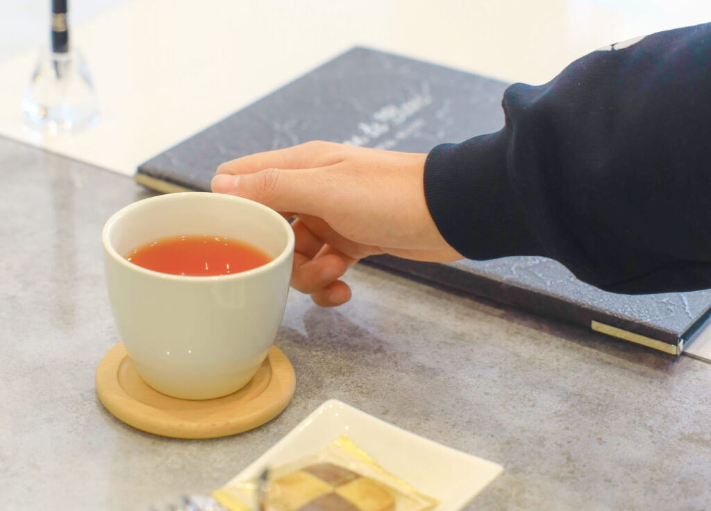 お手入れをお楽しみいただいている間はもちろん、お待ちいただいている時も心からリラックスしていただける様に、温かいコーヒーや紅茶そして心を込めて選んだお菓子をご用意しております。私たちが提供するのは、ただの飲み物やお菓子ではありません。